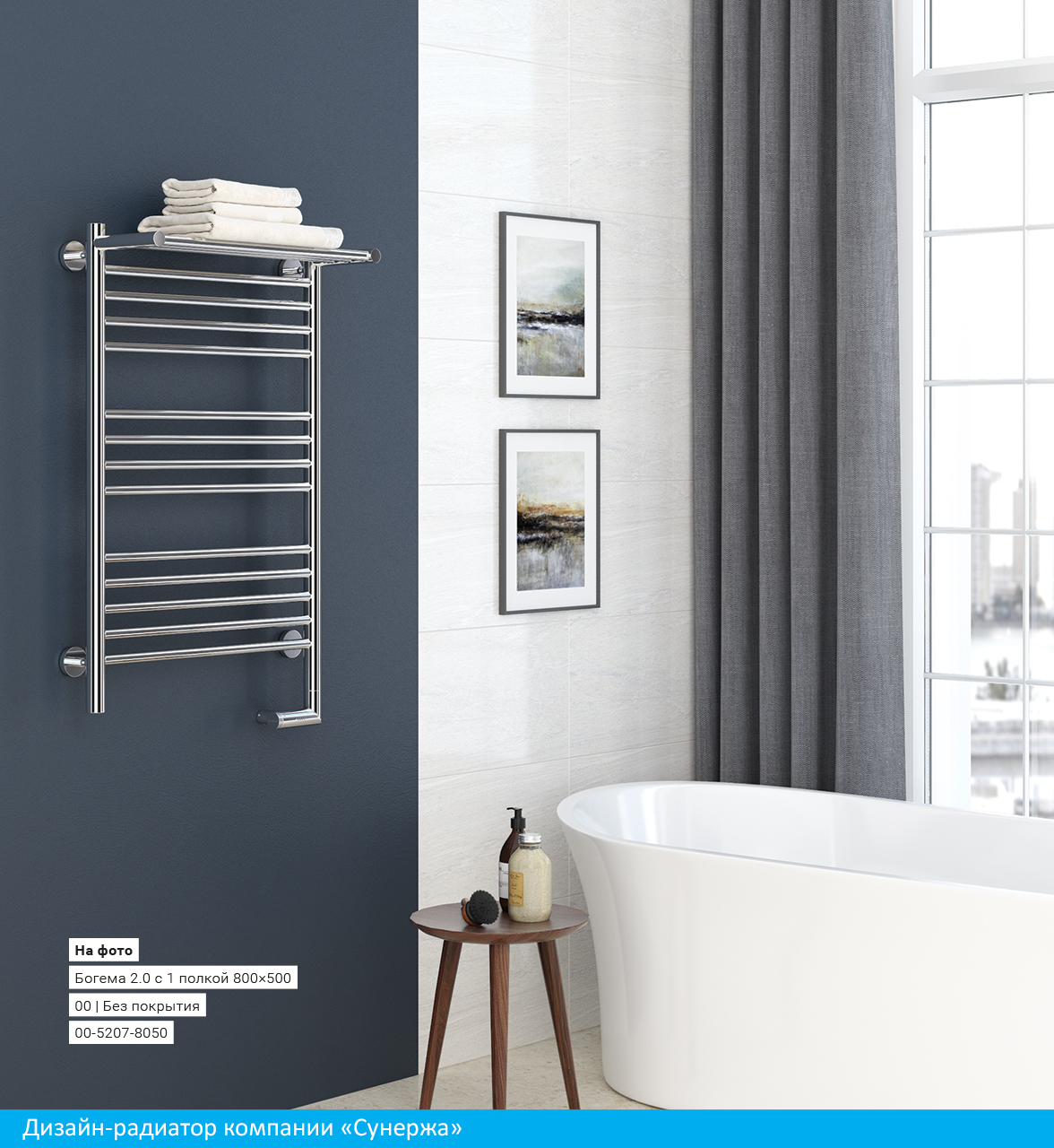 Полотенцесушитель электрический Сунержа Богема 2.0 с полкой 800x500